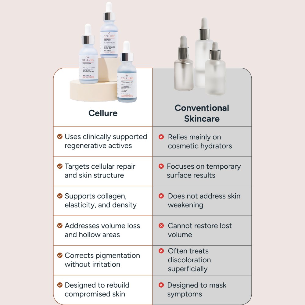 By addressing collagen signaling, uneven tone, and age-related volume loss, this system supports comprehensive skin repair beneath the surface — where visible aging begins.